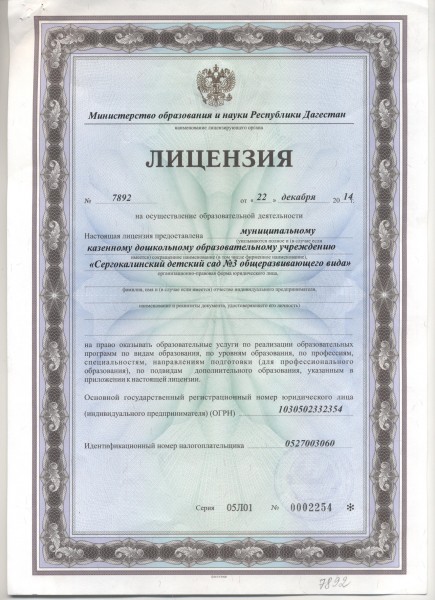 | Полное наименование образовательной организации* | Муниципальное казенное дошкольное образовательное учреждение "Детский сад № 3 с.Сергокала" |